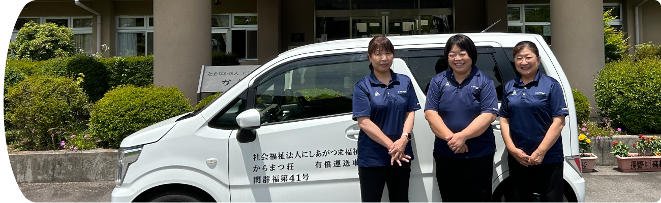 - 送迎車は福祉車両ですので、乗り降りが大変な方でも安心です